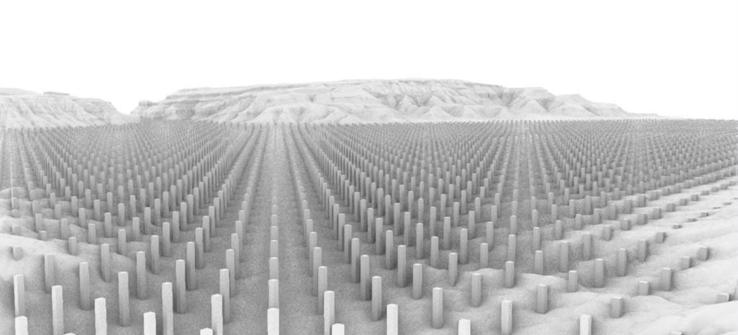 10000 Days of Salt. This image is a computer visualization of the projected amount of salt removed from the Dolores River by the Bureau of Reclamation between December 2022 and December 31, 2049. Each pillar represents one day of salt recovered from the Dolores River.